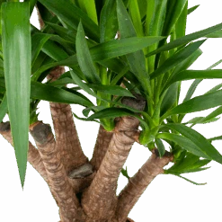 De Yucca is een makkelijke kamerplant die weinig verzorging verlangt. Maar let op met kinderen en huisdieren, want het sap van deze plant is giftig. De Palmlelie is een stoere plant die opvalt door zijn dikke bruine stam met daaraan langwerpige groene bladeren. Hij komt goed tot zijn recht op een lichte plek met direct zonlicht. Geef de Palmlelie regelmatig water en zorg dat de grond tussen het water geven door kort opdroogt.